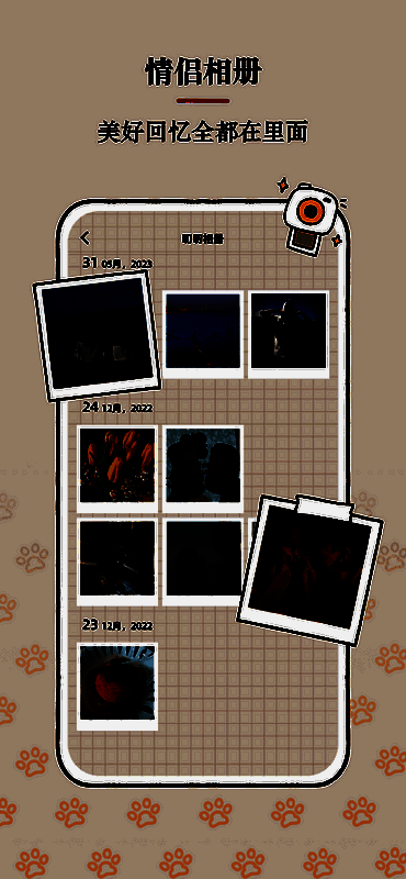 2.照片墙:上传并分享彼此照片,记录美好时光。