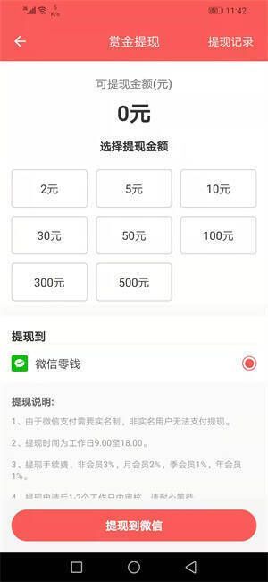 3、软件满 2 元即可提款到账,提款时间为工作日 9 点至 18 点,基本秒到账。