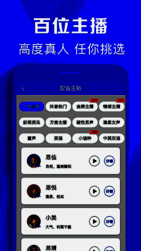 培音配音软件APP苹果版是一款专业的文字转语音配音软件,由合肥名阳信息技术有限公司精心研发,为用户带来高效、便捷的文字转语音服务。它集配音、录音转文字等多功能于一体,能满足商业宣传、广告配音、英语读物制作、有声阅读等多种场景的配音需求。