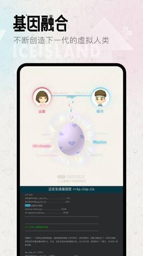 小冰岛app是功能强大的人工智能实验平台,亮点在于用户能创造自己喜欢的虚拟人类,通过培养训练使其成为完美朋友。用户可自由融合框架中的基因,创造无限虚拟人类并打造心仪模样。这些虚拟人类以用户为中心,可与之聊天、分享生活、一起工作。此外,该app提供高标准安全保护,确保虚拟人类不被滥用。