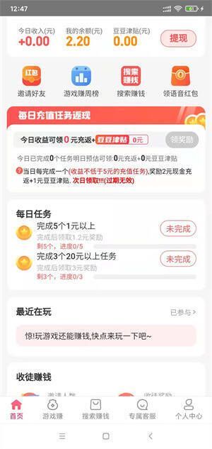 想要畅玩各类精彩游戏并免费下载玩耍吗?豆豆钻ios苹果版就是你的绝佳之选!在这里,你不仅能尽情享受游戏乐趣,还能轻松领取红包奖励,分分钟完成任务收获丰厚红包。平台任务每日更新,为你推荐全新好玩的任务。