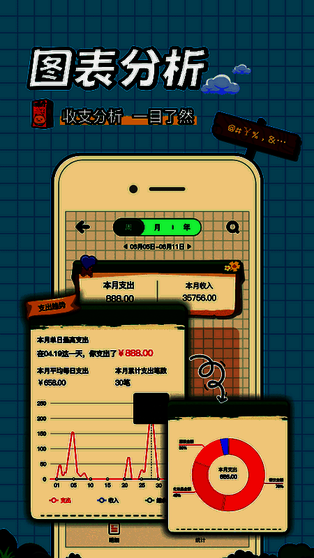 1、用户能够看到记账数据以虚拟立体图形呈现,享受视觉与记账的双重乐趣。