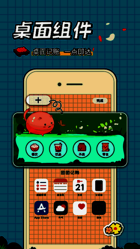 1、用户能把可爱的团团放置在桌面,一键记账并查看收支趋势,随时随地掌控开支。