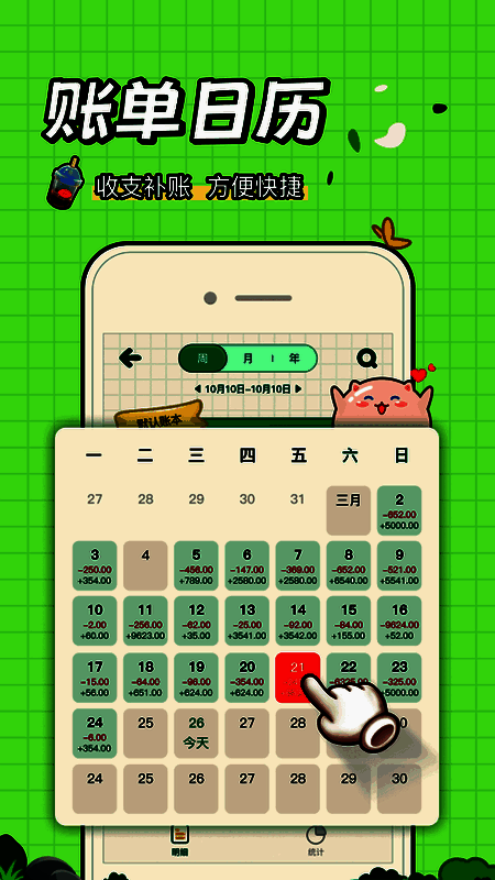 3、该应用支持查看日月年日历,收入支出一目了然,助你更清晰掌握财务状况。