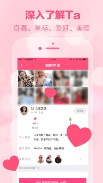 它是在线同城约会 APP,可随时发现身边高颜值单身男女,一键群打招呼,无限畅聊,让相识变得简单直接。