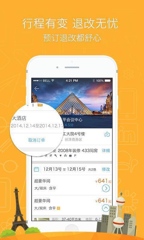 《你定旅行》是一款极为便捷的互联网全球酒店预订服务平台。此软件不仅能让用户以全网最低价格预订各类高档酒店,还可享受全国中高端酒店在线预订与高端化酒店定制服务。它是自主研发的新一代酒店移动在线智能预订 APP,借助移动互联网用户网络行为模式分析算法和旅游用户大数据分析技术,结合 C2B 逆向竞拍模式,为消费者提供优质低价的预订服务,涵盖国内数千家中高端星级优质酒店。