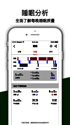 可记录全年运动和睡眠数据,查看周月趋势并获健康建议;能将运动成就分享到微信、QQ、微博和好友比拼;智能闹钟在浅度睡眠唤醒,开启活力一天。