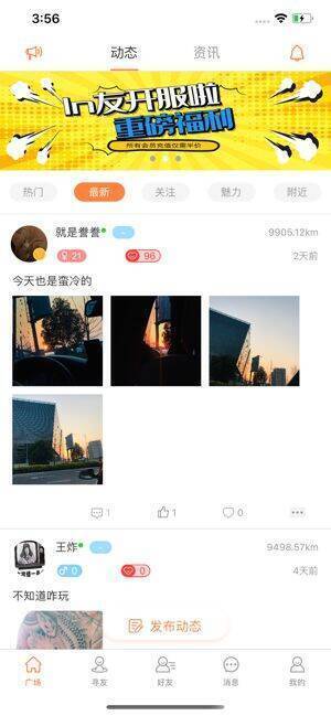 in友圈app手机版打造了一个优质社交圈,大家能随时结识附近的朋友,畅谈心扉。这是个正规交友平台,每个用户都需用身份证绑定账号才能正常交友。平台设有广场社区,可发布心情、分享趣事和优质文章,还能互相点赞、评论,互动超棒。