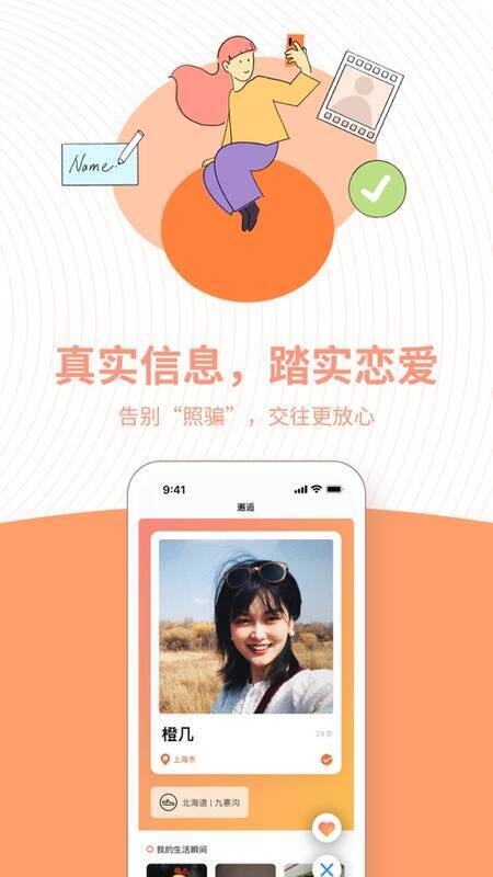 2、在“橙”上找到心仪对象的概率较高,平台要求用户真实注册信息。