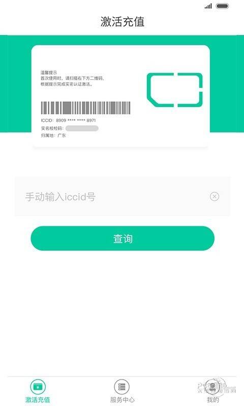2、在激活充值页面,可对卡进行激活和充值操作。