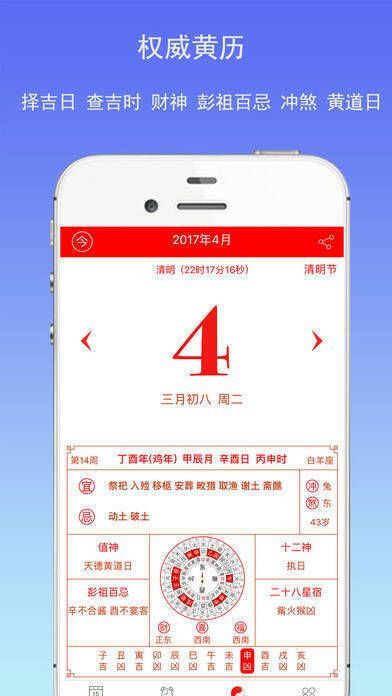 1、【权威黄历】包含黄历、每日宜忌、时辰吉凶、冲煞、二十八星宿、十二建星、彭祖百忌、黄道日、黑道日等内容,是了解传统老黄历的必备工具。