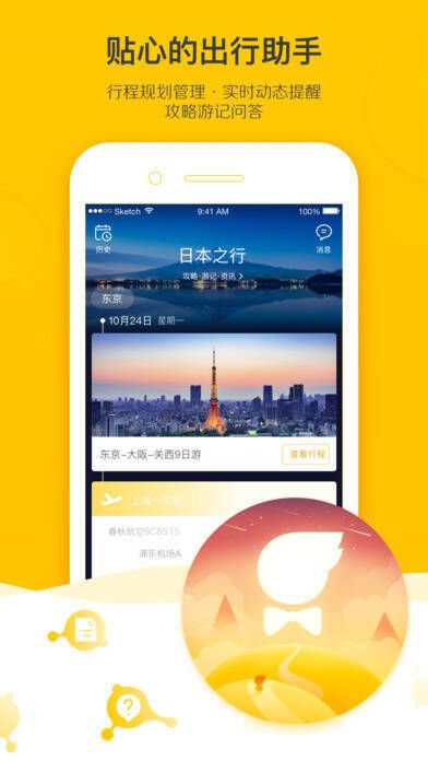 旅行日程:可统一管理出行计划,查阅当地周边信息,查看每日路线地图,轻松导入外站行程,支持离线查看;能查看历史行程,可将行程分享给朋友或再次预订;在语言不通的国家,可展示问路卡和地图描述目的地。