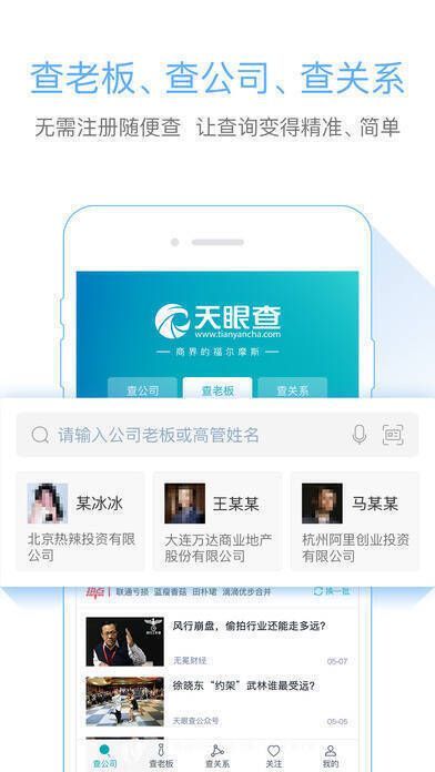2、无需登录即可免费查询,信息同步更新。具备关系梳理透明化、专业信用报告呈现等高阶功能,深受明星老板青睐,适用于所有人群。