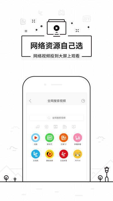 全网视频一搜即看,支持各大视频网站内容,可一键推送到电视;