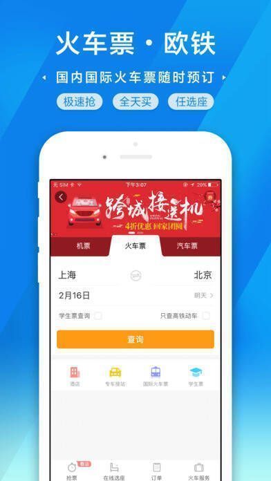 3、火车票:可随心预订国内外火车票,支持学生票、儿童票,与12306直连购票。具备全新极速云抢票、上车补票功能,抢票更省心,还提供退改签及私人订制服务。