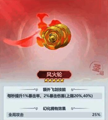 飞剑中的风火轮在使用该飞剑技能时每秒提升1%暴击率