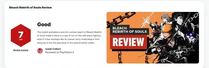 近日,万代南梦宫的《死神:魂魄觉醒(BLEACH Rebirth of Souls)》正式发售,本作一款基于热门动漫世界观打造的全新格斗游戏。IGN评价为拥有超越同类作品的独特魅力,并打出了7分的评分。