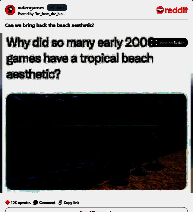 也有玩家表示正相反,沙滩美景的多发正是因为游戏机机能的限制。因为比起更耗费资源的城市街道,沙滩大海毕竟更好做。