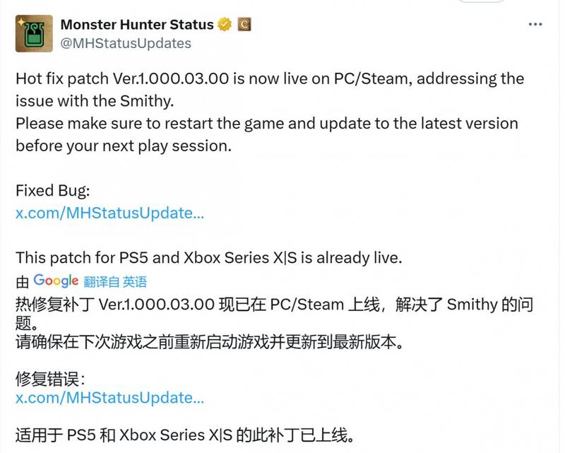 不过,好消息是,该问题已经得到解决,官方已经推出了热修复补丁Ver.1.000.03.00,修复了铁匠铺问题。玩家可以重启游戏,升级到最新版本。