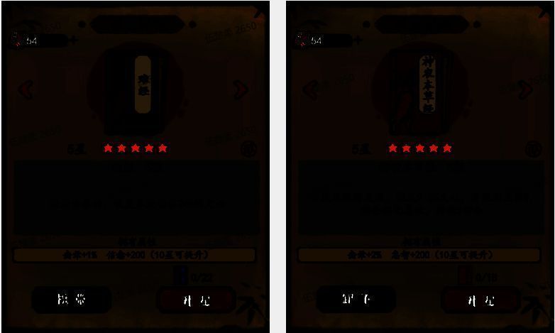 可携带难经,造成击晕时回复生命值或者选择神农本草经获得一次复活效果(保命专用)
