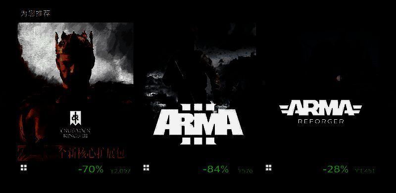 多款新旧大作参与战争游戏节打折促销,其中优惠力度较大的游戏包括《武装突袭3》优惠84%,《十字军之王3》优惠70%,《战争号令:地狱之门》优惠75%,《全面战争:三国》优惠75%,《骑士精神2》优惠75%。