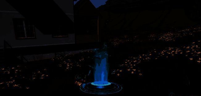 其实 ,全息投影很简单,在扔出来之后,马上就会出现一个透明的建筑轮廓。一开始数值是零,这也就意味着还没有开始建筑,但这就好像是一个可视化的建筑指南。大家只需要按照投影里的结构,就好像拼图一样一块块的去填充材料,很快就能还原一些精美的建筑。