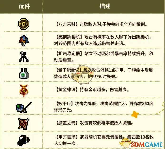 5、与铁匠交互可获得配件,每把武器都可同时装配两个配件。