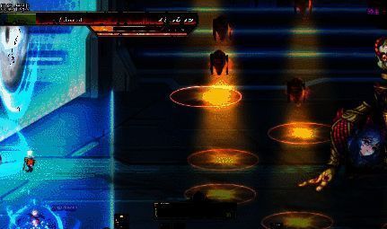 Boss在场地一侧从上到下发射激光,利用场地上的绿色圈可跳跃躲避
