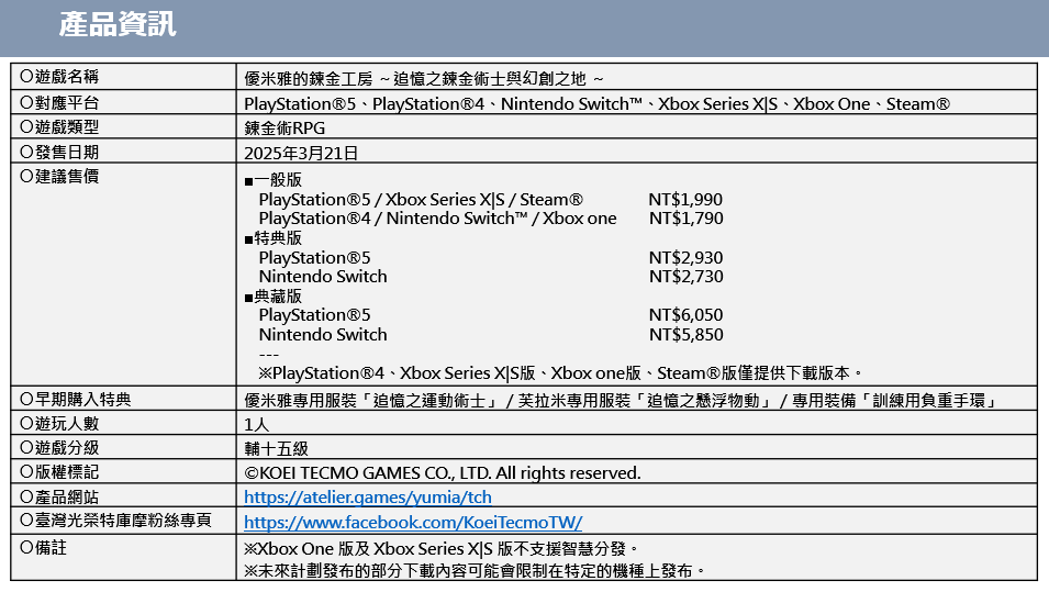 今日(1月22日),光荣特库摩官方公布《优米雅的炼金工坊~追忆之炼金术士与幻创之地》,该作将于2025年3月21日发售。