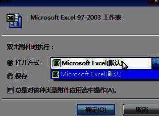 弹出附件窗口—在下拉▼中选择默认打开的程序,勾选“总是对该种类型附件应用选中操作”—点击确定。