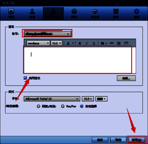 3.最后,选择账号,编辑输入模板,点击应用按钮保存即可