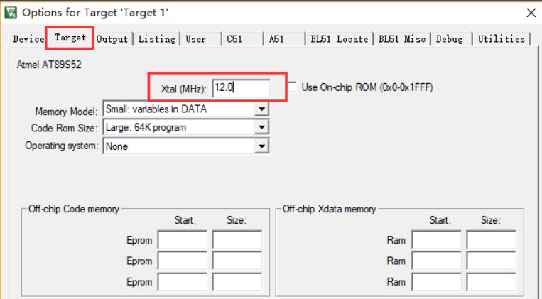 在Options for target对话框中,切换到target栏中,输入与自己实际使用晶振的频率