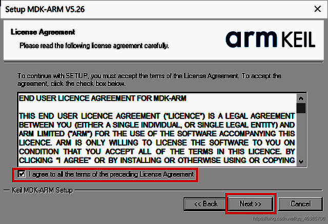 2、勾选 lagree to all the terms of the preceding License Agreement后,点击Next>>