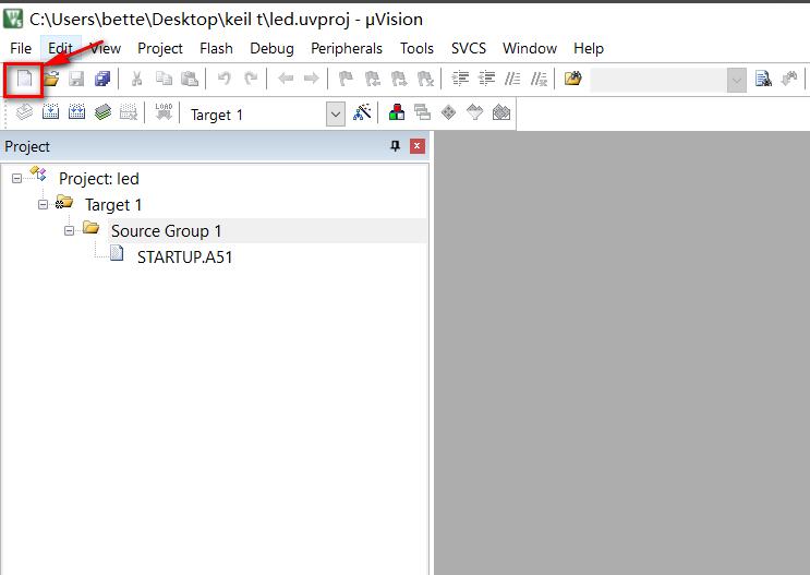 我们已经新建项目完成,不过现在里面什么都没有,我们需要在里面添加程序文件,点击菜单栏新建文件的图标