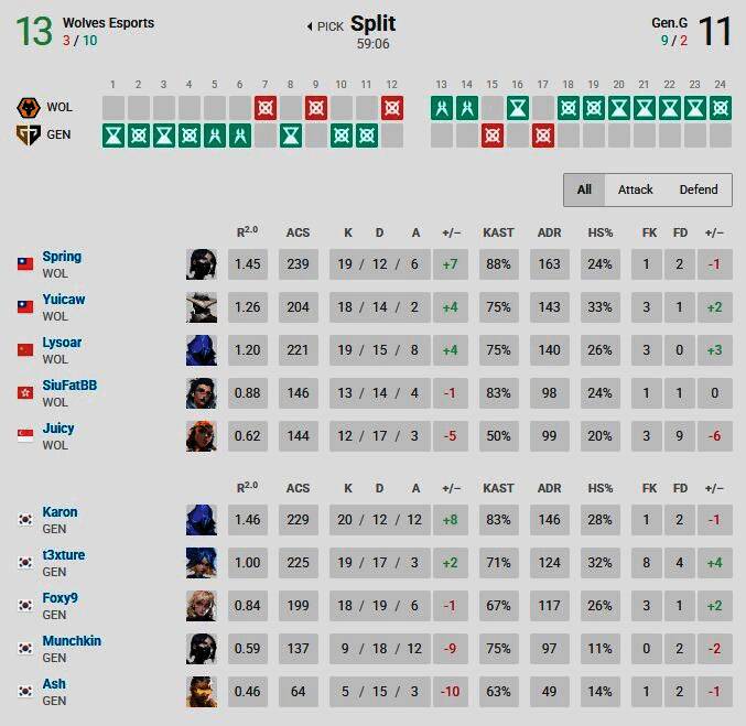 狼队电竞(Wolves Esports)与Gen.G即将在VALORANT多伦多大师赛上演一场载入史册的东亚洲际对决。两支战队仅一步之遥就能挺进胜者组决赛,最终狼队绝地逢生0封Gen.G挺进三强