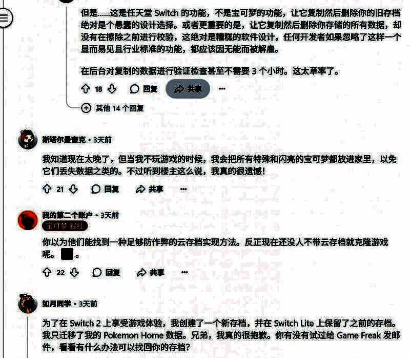 不少玩家表示,这种情况再罕见也让人害怕,强烈建议用宝可梦Home备份。