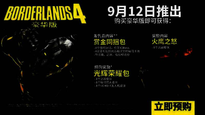 《无主之地4》是一款刷宝游戏,是无主之地系列的最新作品。而这款游戏的售卖版本分别是标准版、豪华版和超级豪华版,豪华版除了本体游戏之外还有赏金同捆包、火鹰之怒武器皮肤等等。