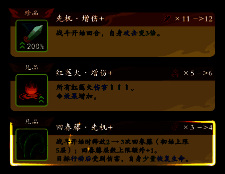 3. 红莲火(火属性神通):主要依靠反击触发;技能定位偏向反击输出,叠加燃烧层数越高输出伤害越强。