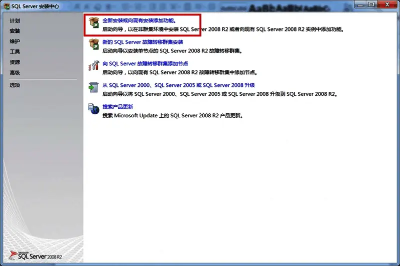 3.选择右侧的“全新安装或向现有安装添加功能”,如下图所示。