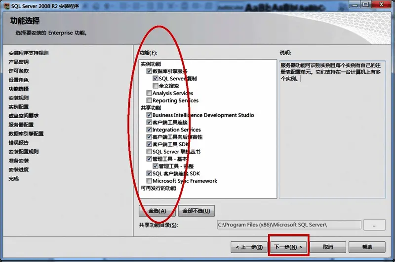 11.勾选功能,参见图示,然后选择“下一步”,如下图所示。