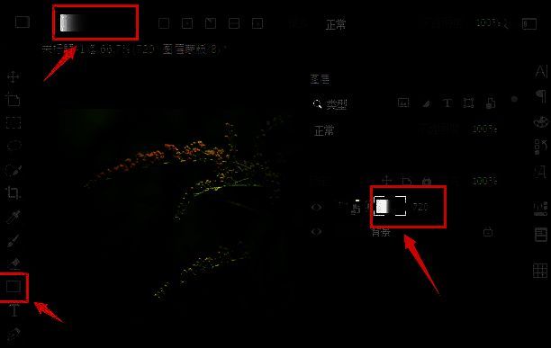 4.最后,鼠标点击蒙版,打开渐变工具,添加从左到右、白到黑的渐变颜色,并打开背景图层显示即可