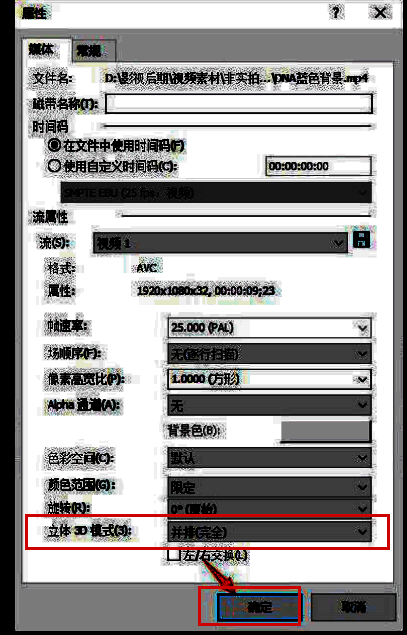 4.最后,将立体3D模式设置为并排(完全)后,点击确定保存即可