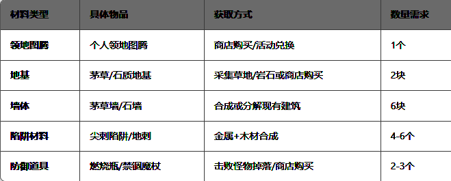 优先使用石墙(防御力更高)或混合茅草墙+尖刺陷阱(低成本)。