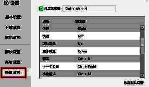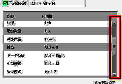 拉动右侧的滑动条,就可以查看播放器快捷键了