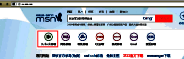 2.点击bing搜索旁边的 “邮箱”选项,出现的“outlook邮箱”点击即可进入