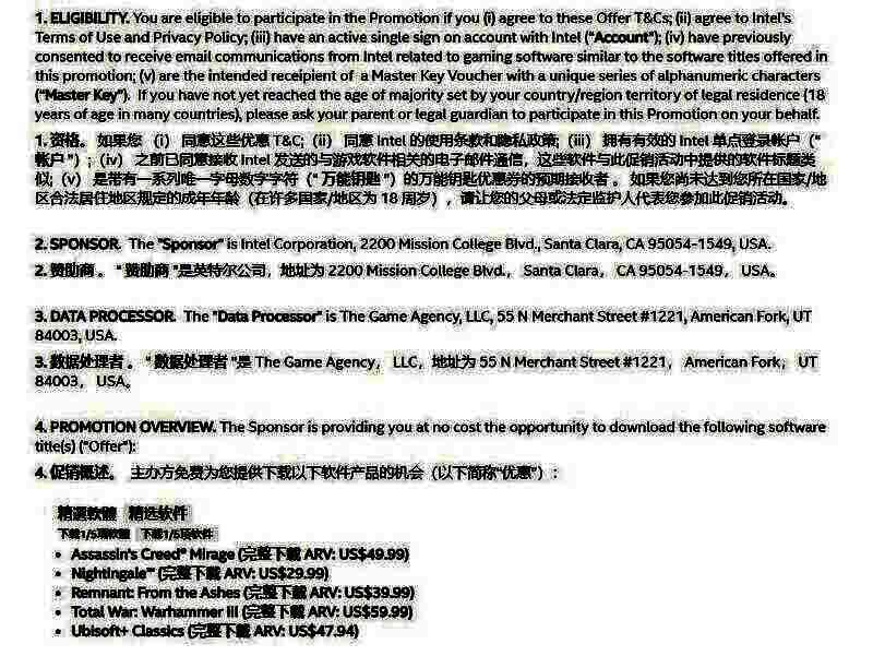 英特尔正在举办精选游戏限时免费领取活动,只需简单几步即可获得游戏!(包括《全面战争:战锤3》、《刺客信条:幻景》等)