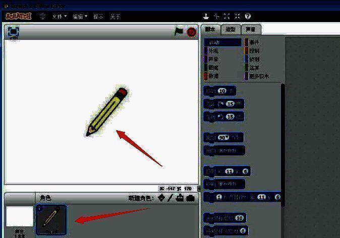 4.最后,当编程页面中出现铅笔角色后,即代表创建完成