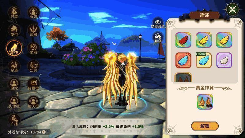 羽翼拥有独特的外观设计,随着进阶等级的提升,外观也会变得更加绚丽多彩。