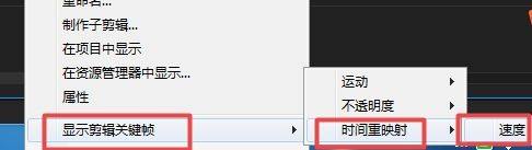 打开时间重映射选项后,时间线面板中的视频素材上的线就变成了速度控制线。将视频素材放大,在需要处理的地方打上关键帧,这里需要注意至少需要打上2个关键帧。