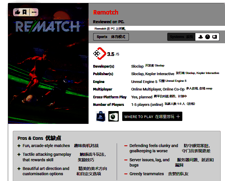 《开球!REMATCH》的底子不错。它充满活力,原始而奔放。但它是块未经打磨的钻石,而且比大多数同类游戏更为粗糙。游戏存在一些严重问题,几乎到了让游戏彻底失去乐趣的边缘。然而,如果玩家能坚持足够久,给开发商Sloclap时间去打磨这些缺陷,去改善服务器,让守门操作变得响应灵敏,那么这款游戏或许真能有所成就。目前来看,它有点一团糟。但这是一款能让你不断回来的“糟”,它迫使你总是想再玩“最后一场”,就为了那可能踢出倒钩帽子戏法的瞬间。而且,这是一款我无论何时都更愿意选择它而非《EA FC》的游戏。